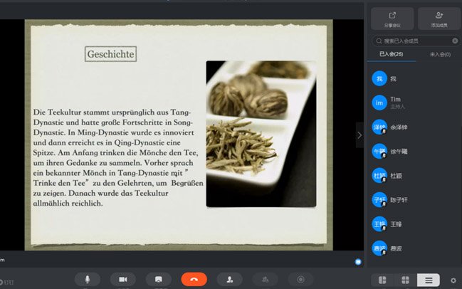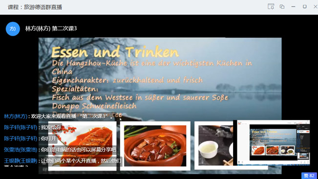 签到和道别:老师在课程须知中要求学生每次课提前五分钟进行签到,并在结束时作德语道别。一个月下来学生们完成情况很好,满满的仪式感让课堂有始有终、自成一体,同时也赋予课堂一种天涯若比邻般的云端亲近,拉进彼此的心理距离。
