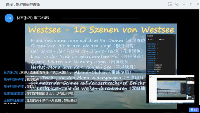学生点赞功能:小小的德语专业班,老师在短短三节课里获赞四千多条,大大促成了老师从“不想当主播”到乐在其中的改变。