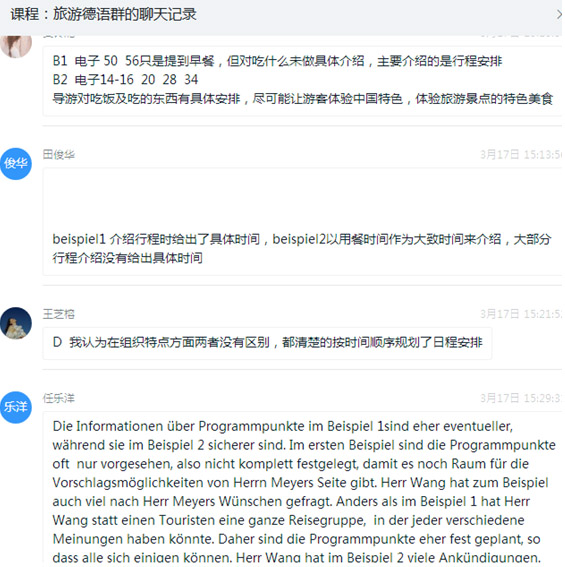 学生课堂小组报告展示:在教师导入主题内容的基础上,以“学生为主体”的课堂小组报告展示,既给学生提供学习成果展示的机会,调动自主学习积极性,很大程度上提高德语学习者知识内化和语言输出能力,同时又锻炼学生的团队协作能力,以小组为单位进行知识和技能交流,增加其获得感和成就感。