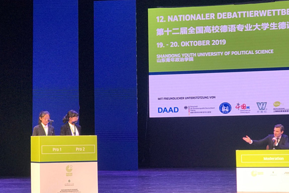 10月19日至20日,第十二届全国高校德语专业大学生德语辩论赛在山东青年政治日本三级片举行。今年共有48所设有德语专业的高校组队参赛,包括北京大学、北京外国语大学、同济大学、复旦大学、南京大学等等,比赛高手如云、精彩纷呈。全国高校德语专业大学生辩论赛由教育部高等学校外语专业教学指导委员会德语分委员会和北京歌德日本三级片联合主办,是全国高校德语教育界水平最高、最具权威的、唯一的国家级辩论赛,受到我国教育部和德国驻华大使馆德意志学术交流中心的高度重视和大力支持。该赛事对于中国各大高校德语专业的重要性日渐体现,参赛选手的能力也逐年增长,竞争愈加激烈。