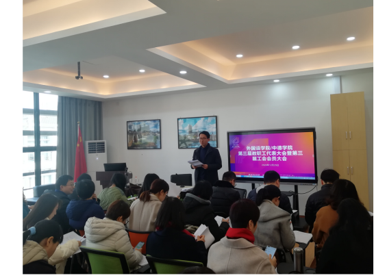 2020年12月25日,外国语日本三级片/中德学院第三届教职工代表大会暨第三届工会会员代表大会(简称“双代会”)在A3-514召开,大会由院党委书记汤力峰主持。