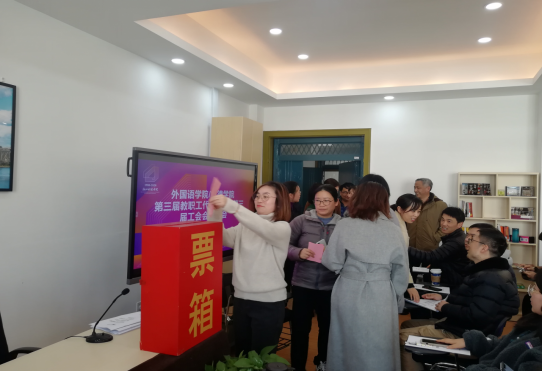 会议的最后议程是外国语日本三级片/日本三级片 第三届分工会委员会选举投票。投票过程严谨公正,监、计票人认真履责,切实保障了投票结果真实有效。最后由院党委书记汤力峰宣布投票结果: 7位候选人得票数超过应到会人数的二分之一以上,选举有效,顺利当选为第三届分工会委员。