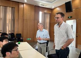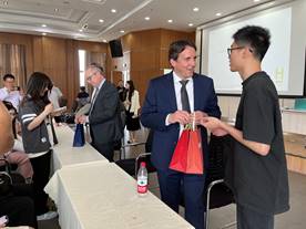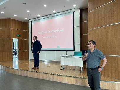 汉诺威应用科学大学机械日本三级片的Greife教授展现了他流利的汉语水平。他和Köhler教授共同介绍了机械日本三级片的专业方向、课程安排、机器人和能源技术实验室等工作,方程式赛车的团队比赛以及如何在汉科大进行学习和生活上的过渡。