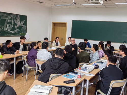 5月10日,“2+3”项目德方合作院校科堡应用科技大学的教授Friedemann Zeitler在我院黄扬副院长和茹潇潇副书记的陪同下来到安吉校区,和我院“2+3”项目土木、生物等专业方向的大一学生进行了交流。