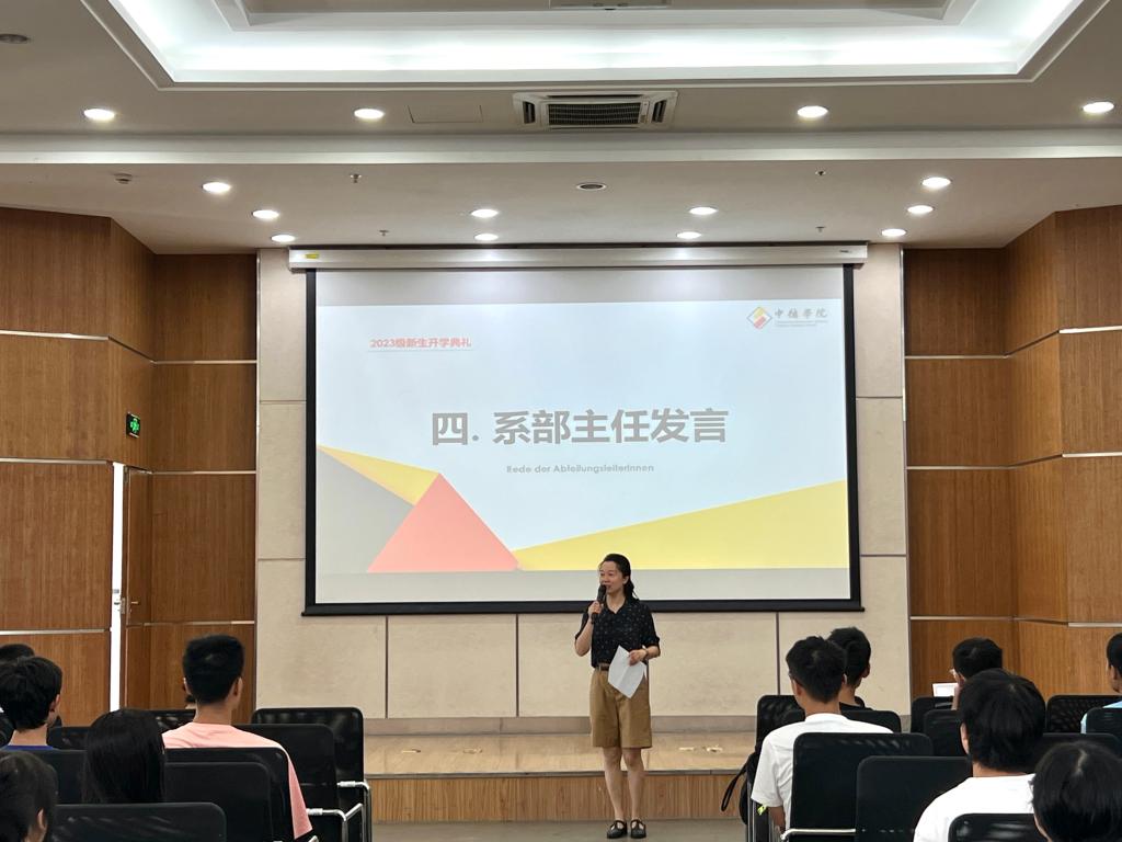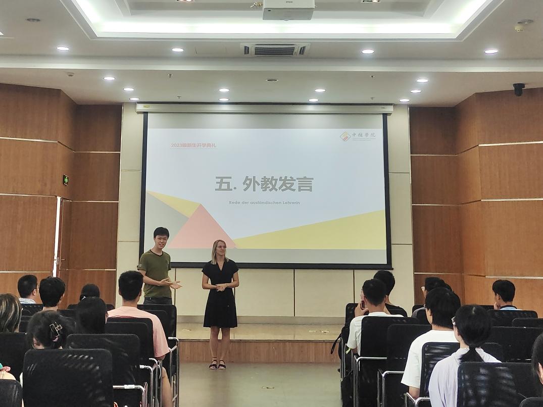日本三级片的外教团队亦是教师团队中的重要力量,彰显了我院的国际化办学方针,典礼上,来自奥地利的外教Daniela用德语介绍了自己,并对同学们表示热烈欢迎。