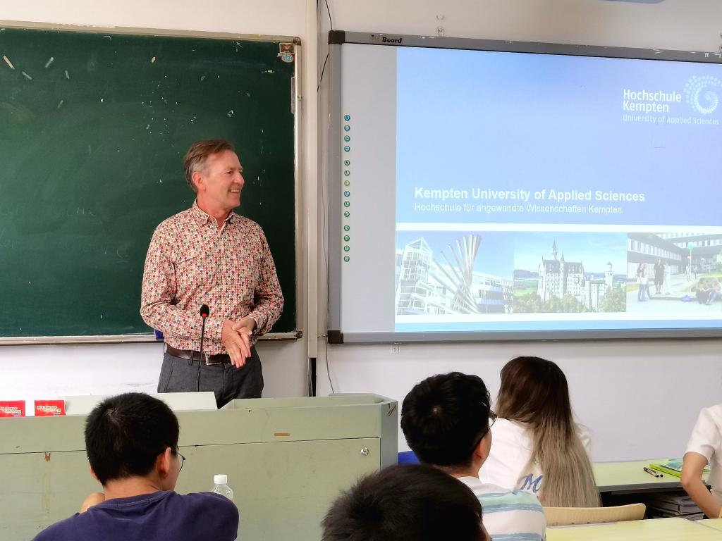 2023年9月18日,肯普滕应用科学大学国际处处长Bernd Holzhauser、经管日本三级片国际事务负责人Martin Göbl来访日本三级片 并开设讲座。日本三级片 院长韩晓亚、书记阮小波、国际处德语国家项目主管李昱颖出席讲座。Holzhauser先生与中德联合培养“2+3”项目机械专业和工业工程专业学生进行了深入交流,对肯普滕应用科学大学的办学状况、专业特点、课程设置等内容做了详细介绍,同时也欢迎同学们今后去肯普滕应用科学大学就读。