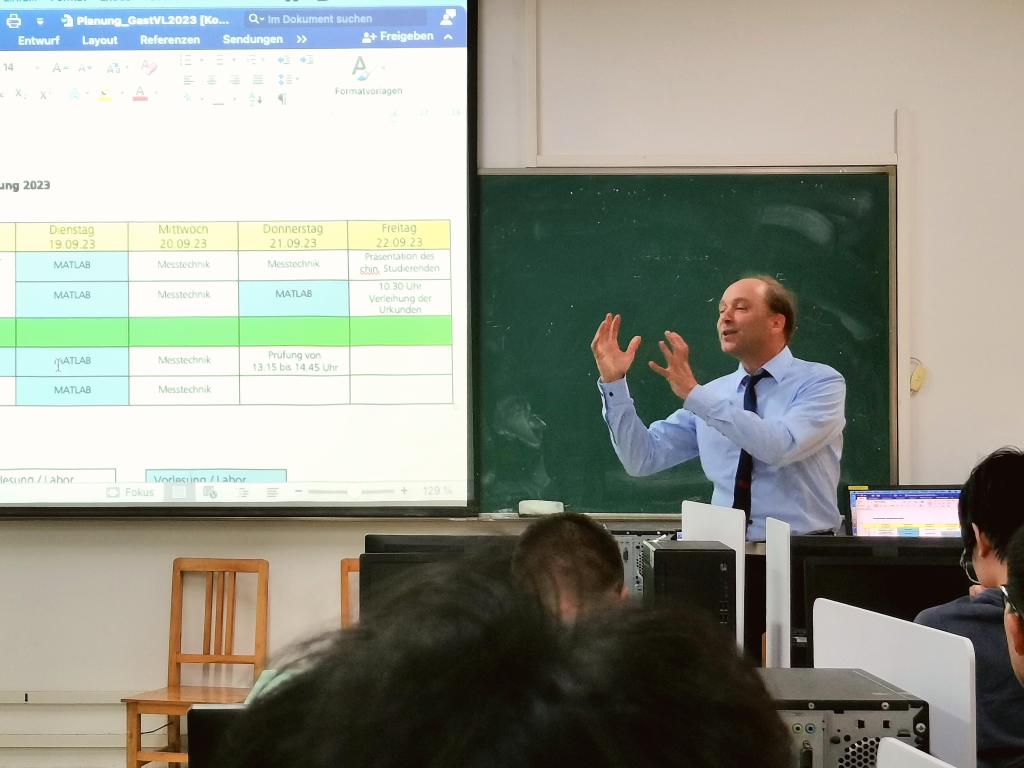 同日,汉诺威应用科学大学电气日本三级片Rüdiger Kutzner教授与中德联合培养“2+3”项目电气类专业学生进行了交流。Kutzner教授就电气日本三级片相关概况、学校网站相关信息及使用方法、专业培养方案等内容进行了详尽的介绍,并对接下来一周的课程内容进行了说明,同学们也对后续课程内容充满期待。