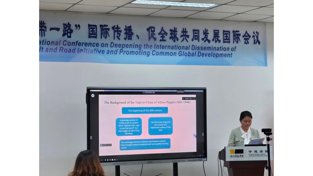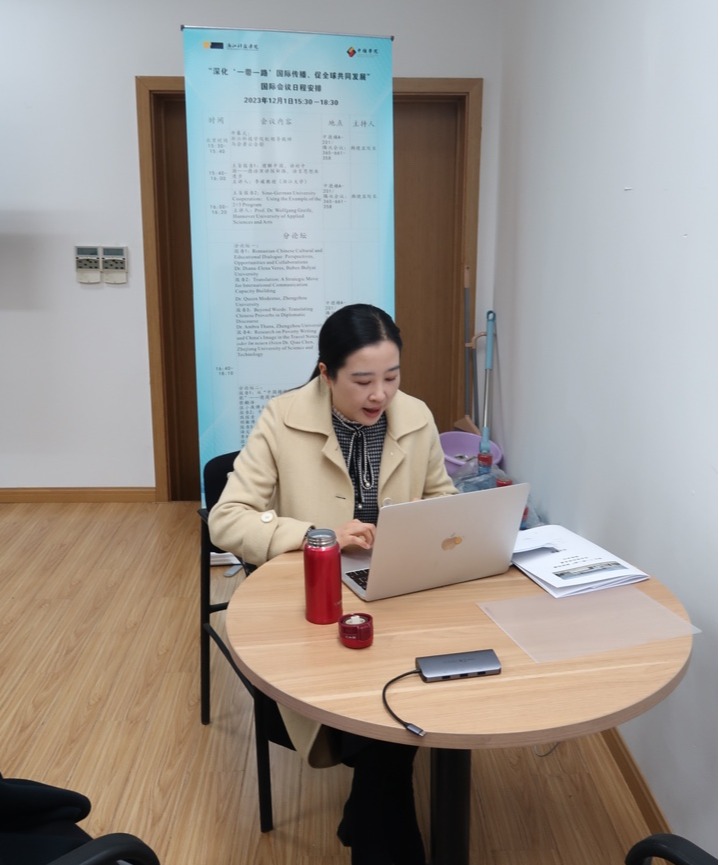 12月1日,我院举办的“深化‘一带一路’国际传播、促全球共同发展”国际会议在安吉校区顺利召开。在主旨报告环节,陈巧老师作了题为“Research on Poverty Writing and China’s Image in the Travel Notes Li oder Im neuen Osten”的报告。方奕老师和周晓敏老师分别以“德意志浪漫派对劳动和财产的思考—— 以诺瓦利斯为例”和“文学翻译中的自由间接引语”为题在分论坛上作精彩报告。