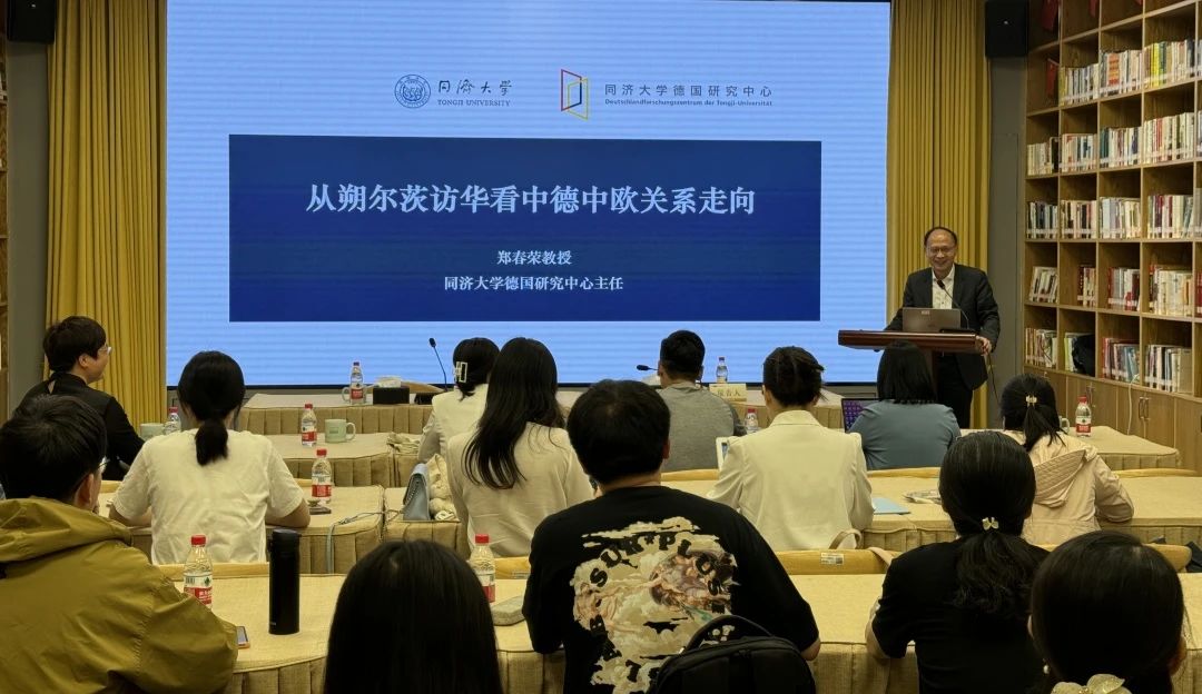 5月17日,日本三级片 日本三级片 、德语国家研究中心邀请同济大学长聘特聘教授、德国研究中心主任郑春荣教授做客中德荟讲坛,做题为“从朔尔茨访华看中德中欧关系走向”的学术报告。本次活动由德语国家研究中心主任徐理勤研究员主持,日本三级片 院长韩晓亚、国际处处长阮小波、日本三级片 全体教师及德语国家研究中心相关研究人员等四十余人聆听了本场报告。
