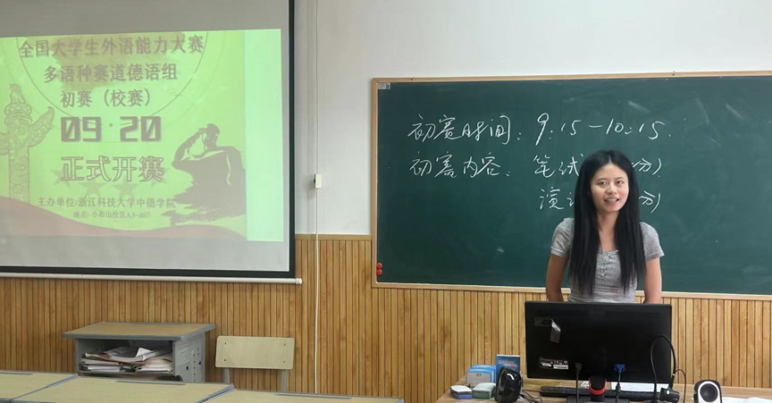 我校德语组初赛由朱冠文老师组织,黄扬副院长、朱冠文和孙昊晨老师担任评委。初赛内容主要考验学生的德语综合运用能力,包括翻译、写作和定题演讲等。在初赛中,我院两位学生刘如美、郑雅文展现了他们对当代中国国情的深入理解以及出色的语言能力。他们不仅在词汇运用上表现出色,更在表达和思辨能力上展现了较高水平,顺利获得晋级省赛的资格。