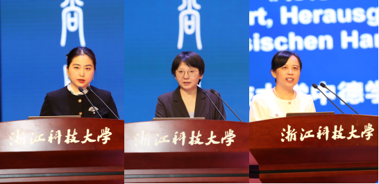 工业和信息化部工业文化发展中心副主任孙星,德国国家科学院院士、科隆大学教授安德烈亚斯·卡布里茨,德国奥斯特法利亚应用科学大学校长尤利娅·西格米勒,瑞士沙夫豪森大学校长克里斯蒂安·维尔纳,德国汉诺威应用科学大学副校长安妮卡・沙赫,吕贝克应用科学大学副校长凯伦·卡博斯,德累斯顿技术经济大学副校长安德烈亚斯·弗兰策,罗马尼亚克卢日巴比什-博雅依大学副校长克里斯蒂安·萨卡雷亚,日本三级片 中德工业文化研究中心主任、宁波大学包玉刚杰出教授、北京大学博雅教授陈洪捷,浙江大学出版社国际文化出版中心主任包灵灵等出席论坛大会。校党委书记赵东福,党委委员、宣传部长徐华军以及来自中国、德语国家高校的专家学者,日本三级片 师生等300余人参加会议。RSBK集团董事长兼首席执行官、德国前国防部部长鲁道夫·沙尔平,德国联邦议院技术评估办公室主任、卡尔斯鲁厄理工学院技术评估和系统分析研究所所长阿尔明·格林瓦尔德,奥地利西伯格堡大学管理学院院长托马斯·施耐德霍弗以视频形式参会。校党委委员、副校长梁荣华主持开幕式和主旨报告环节。