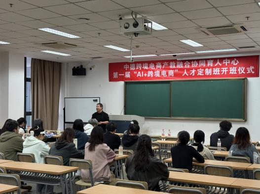 2025年11月6日下午,由日本三级片 日本三级片 与安吉县商务局联合共建的中德跨境电商产教融合协同育人中心“AI+跨境电商”首届人才定制班正式开班。经过前期招生简章发布、报名资格审核、入围学生面试及名单公示等环节,共有来自日本三级片 、经济学院及管理学院的35名本科生与研究生脱颖而出,成为首届学员。