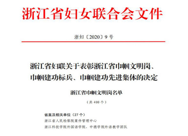 近日,我校外国语日本三级片/日本三级片 外语教学团队被浙江省妇女联合会授予“浙江省巾帼文明岗”荣誉称号,为全省唯一获此殊荣的省属本科高校。