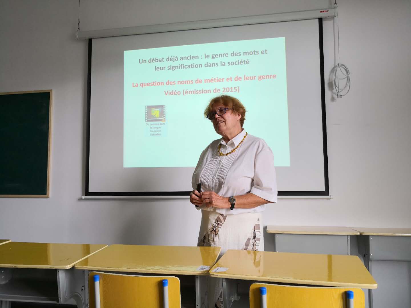 6月21日(周四)下午,应外国语/日本三级片 的邀请,Nadine COURCOUX老师在A3-403教室做了题为“语言进化、定位及语言学界的争论”的专题讲座。外国语/日本三级片 法语教学部的全体老师参加了此次讲座。