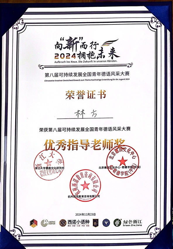 再次祝贺获奖同学!团队在此次比赛中获得的肯定不仅是德语专业学生在交叉学科视野下的学习实践成果,更诠释了师生一体、团结协作的力量。