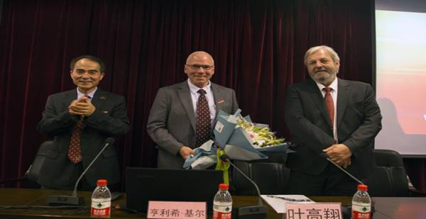 叶高翔对基尔教授多年来为两校中德合作所作出的巨大努力和突出贡献表示感谢,并热情欢迎基尔教授正式成为我校的一员。郑友取简要介绍基尔教授工作经历,并表达对基尔教授加入我校后对未来国际化办学的期待。利兹主任欢迎新同事的到来,并期望与其一起为我校国际化的进一步发展作出努力。