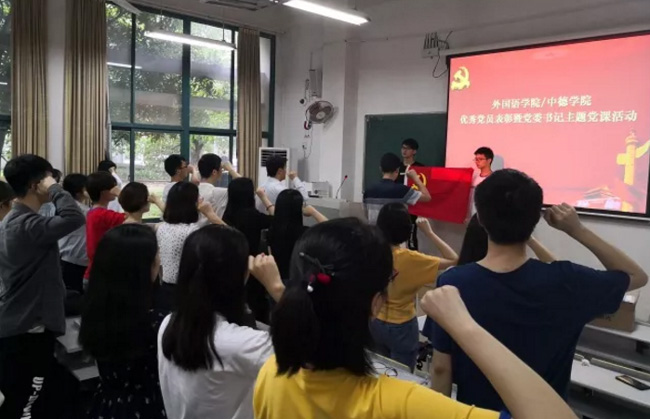 在毕业生离校之际,外国语日本三级片/日本三级片 组织毕业生党员,开展党员教育系列活动,通过优秀党员表彰、交纳“特殊党费”、重温入党誓词、再上一堂党课等活动,进一步提高毕业生党员的思想觉悟和使命担当意识。