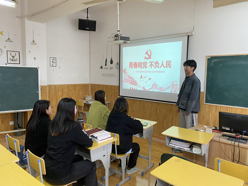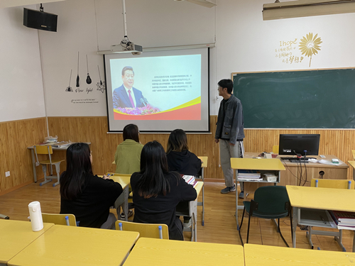 2022年5月10日下午,我院德语191党小组在A3-403室开展了以“青春向党 不负人民——学习习近平总书记在中国人民大学考察时讲话”为主题的集中学习会。本次学习会由李浩宇同学主讲,党小组全体成员参加。