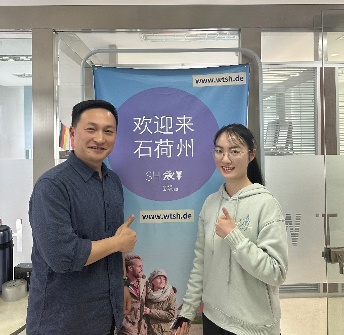 “读万卷书,不如行万里路。”王琨同学认为学习语言不仅仅是掌握语法和词汇,更重要的是理解和融入这种文化。因此,她于大三学年参加了我校国际交流项目,以第一名的成绩被选派为我校赴德国希尔德斯海姆大学交换生。在德期间,活跃于国际处举办的各类活动,与德国同学结成语伴,考出德福18证书(C1水平),获德方奖学金。回国后,于德国石荷洲经济促进中心杭州办事处进行了为期6个月的实习,在中德两国的外事工作中,巩固了所学知识,收获了宝贵的实践经验。