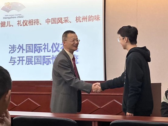 为科普外交礼仪,让学生深入了解国际知识,我院于2023年11月10日下午开展主题为《涉外国际礼仪礼宾与开展国际性交流》的讲座,讲座邀请了省外办王敏处长进行演讲,日本三级片老师和中德联合培养本科生项目学生于图书馆报告厅参加讲座。 王处长详细讲解了外交礼仪,穿着打扮以及坐姿站位的相关注意事项,他强调“服装是为了不让你被拒之门外”,这让同学们更深刻的了解了服装对于一个人的形象的重要性,王处长还随机抽取了几名同学进行...